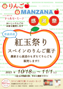 青森県の農家さん直送のもぎたて紅玉りんごを使ったスペインのりんご菓子。毎年りんごのお菓子を楽しみにしている皆様、まだスペインのりんご菓子を食べたことがない皆様、この機会に是非ご来店くださいませ☆